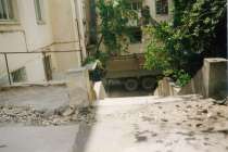 Первые два сняты с той же точки с небольшим смещением ракурса влево и вправо (может, можно склеить в панораму?). Третье - с другой, но на нем виден лишь кусочек здания и грузовик, для основного раздела оно, на мой взгляд, не подходит. Вот это, например, я к объединению не предлагаю: http://oldsaratov.ru/photo/17370, потому что тут однозначно другой вид, хотя двор тот же.