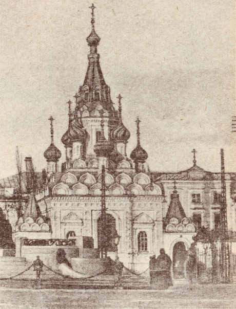 В северной части Соборной площади (пл. Чернышевского) располагался памятник императору Александру II (скульптор С.М. Волнухин), установленный в 1911 году (снесен в 1918). На заднем плане расположен архиерейский дом и домовая церковь управляющих Саратовской епархии. Тогда она называлась Крестовая церковь. В словаре название объясняется так: "так называются церкви, устраиваемые при митрополичьих и архиерейских домах и управляемые основателями их или их владельцами. Отсюда "кресты править" — значит отправлять церковную службу в каком-либо частном доме, хозяин которого может назначить время для службы и прибавлять или уменьшать молитвы, чего не допускается в общих церквах."