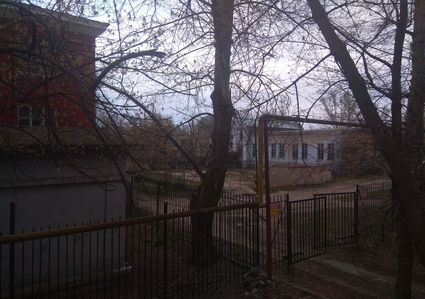 Да, вот этот дом с колоннами. В 70е годы, конечно не было забора, он возник в конце столетия. Дом не был так хорошо отремонтирован, были всё окна на первом этаже и был проход вдоль него.клумба была, но деревьев не было. Он ,видно было, когда-то давно был оштукатурен, но всё уже тогда рушилось и не поддерживалось. Всё внимание было угловому корпусу и внутреннему, за этим домом, только что построенному. Думаю, это довоенное здание, могу конечно спросить у одноклассника.