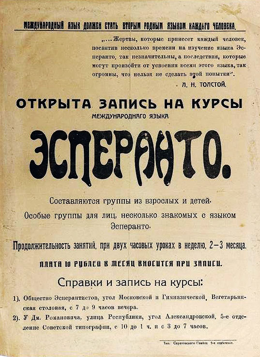 Объявления времён ранне-советского увлечения эсперанто.