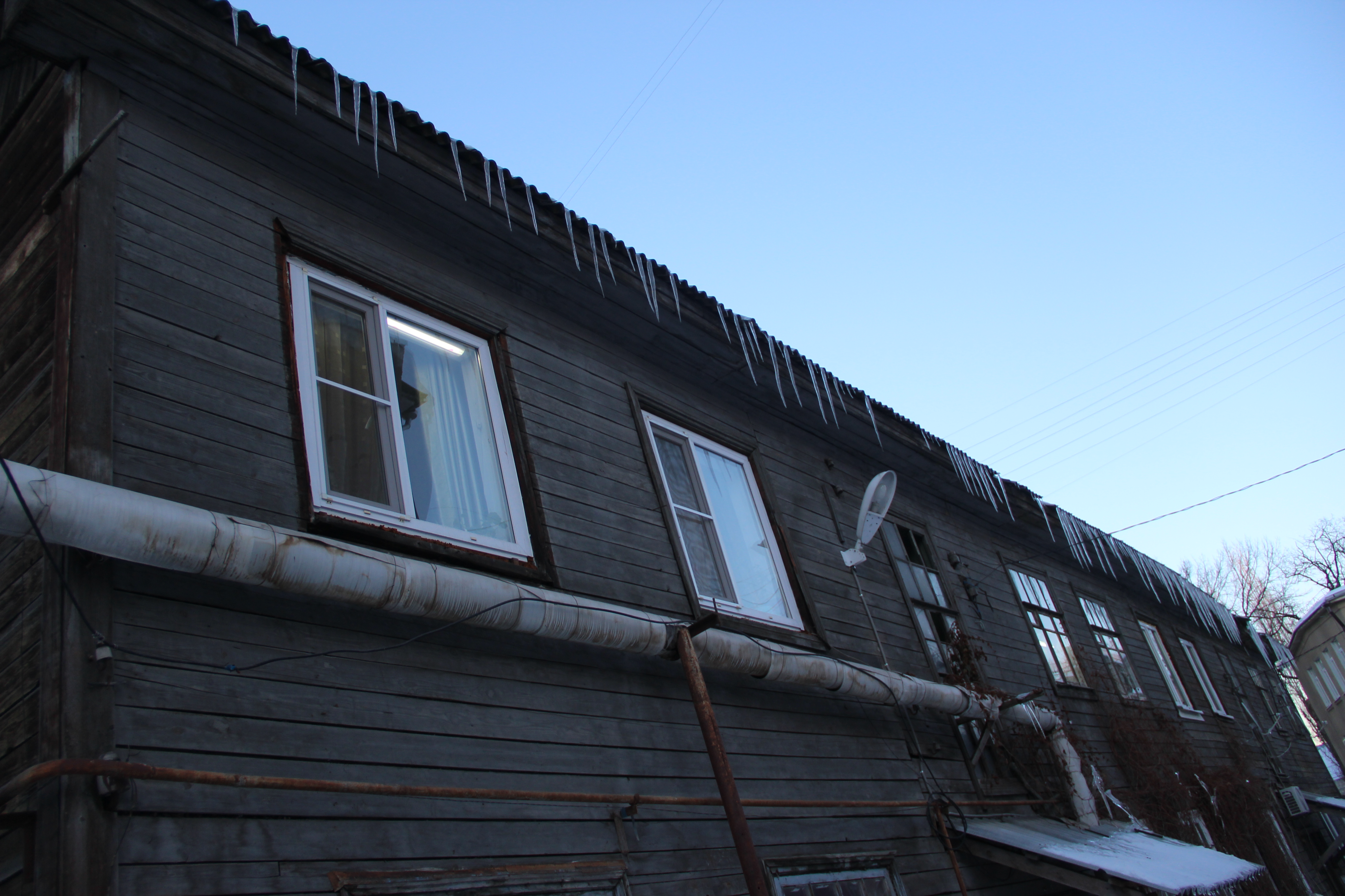 И насквозь пролили все перекрытия и стены. Зимой.