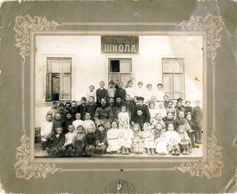 Фото из архива Анны Скоромной (Юдиной). Приходская школа при церкви в селе Тугузка (современная Покровка). Священник с ребенком на руках Чернышев Иван Дмитриевич. Ребенок на коленях-бабушка хранителя архива. Точку поставил условно. Села Покровка на карте нет. Но расмоложено оно рядом с мостом через Терешку.