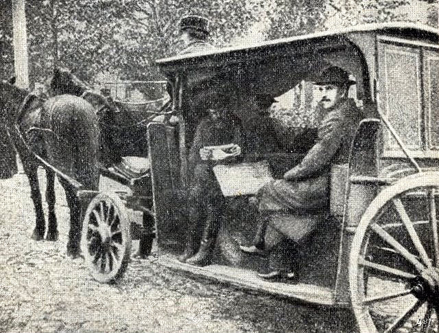 Вид транспорта - "линейка", прямой предок автобуса, называлась так за расположение скамеек.