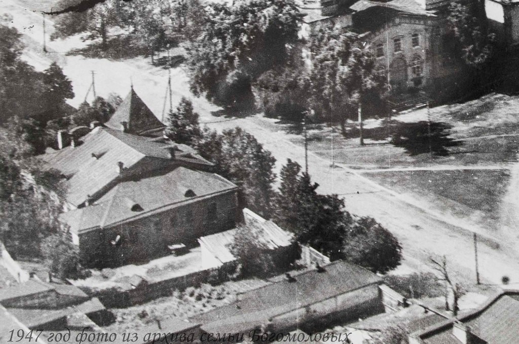 Здание Казначейства уездного и фрагмент храма Покрова Пресвятой Богородицы.