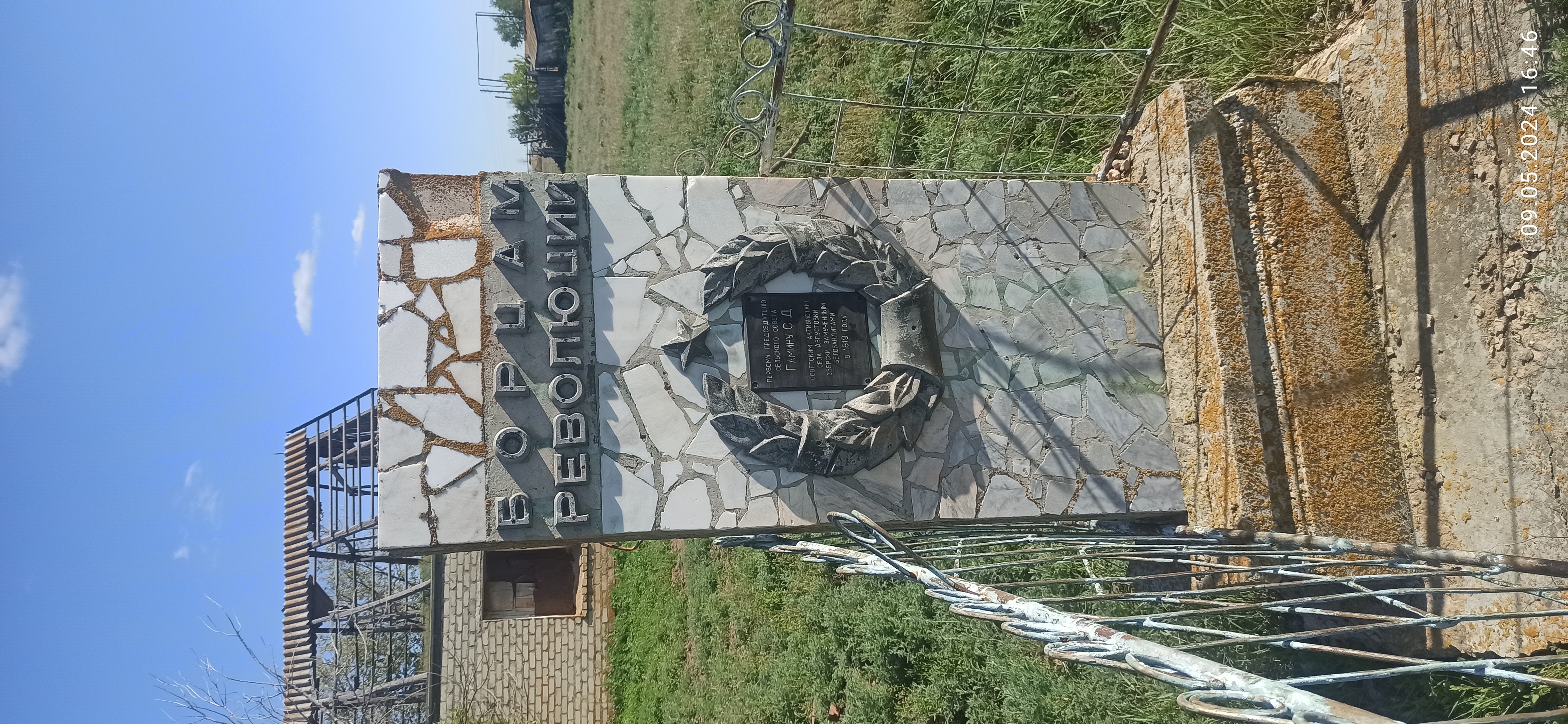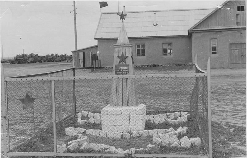 Обелиск на братской могиле жертв белоказаков - председателя сельсовета Гамина С.Д. и советских активистов с. Августовка. На фронтальной стороне табличка с надписью: «Гамин / Сергей Дмит. / погиб в 1919 г.».