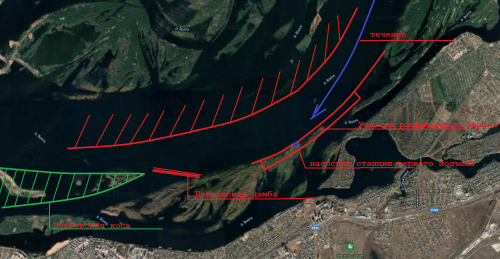 Уважаемый Юрий Шанин, указав высокий берег я не имел в виду высокий правый берег Волги, а лишь хотел отметить что берег в этом месте был высокий и не заливался весенними водами. Берег активно размывался в большую воду особенно с учетом того что этом месте стремительное течение. Порода, смытая с берега обходя находящуюся рядом Покровскую дамбу оседала напротив Пономаревского острова образуя обширную косу, называемую Покровскими песками. В дальнейшем рядом образовалась еще одна песчаная коса (Предпокровская). Что касается точки то мое мнение работы по укреплению берега проводились чуть вышек покровской дамбы, которая фактически располагалась напротив бывшей беконной фабрики, и стало быть точку необходимо выставлять немного ниже. Примерно поставил.