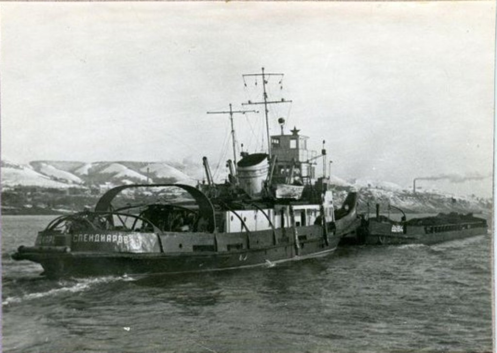 Буксир-толкач ,Спендиаров" построен на заводе "Красное Сормово" в 1952 г.,порт приписки Куйбышев.Фото около 1959 г.https://fleetphoto.ru/vessel/48640/